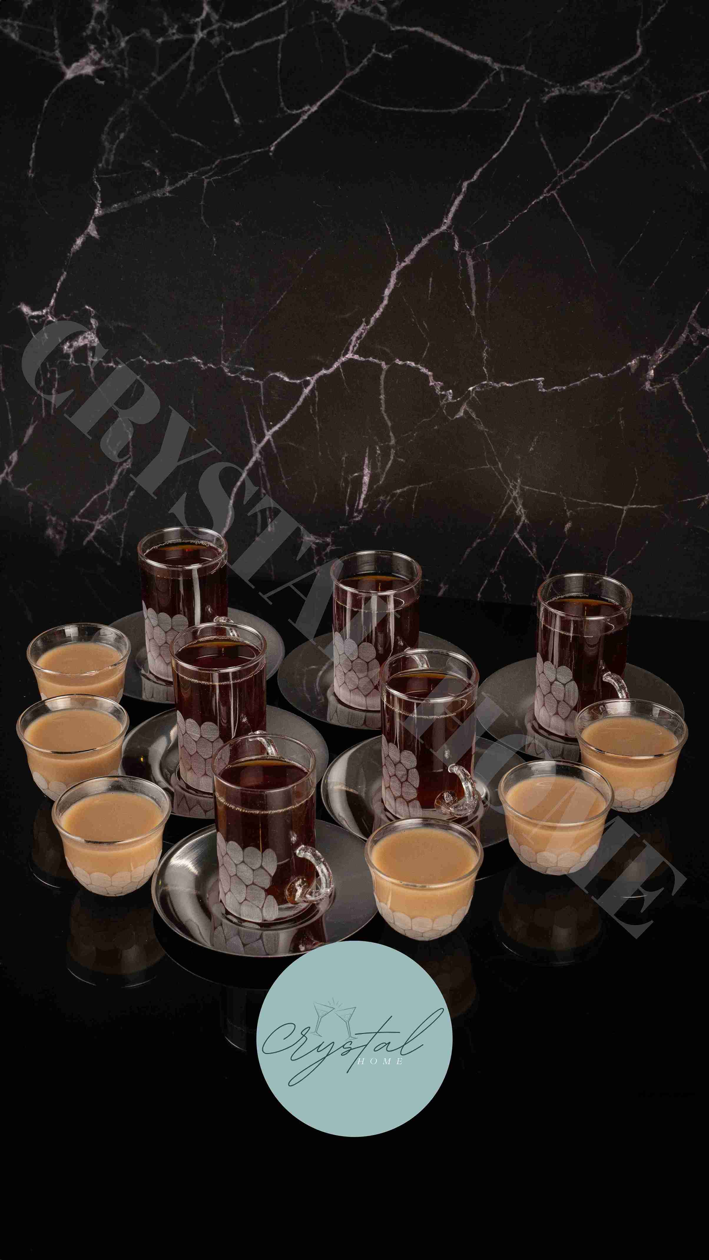 A tea and coffee set consisting of 18 pieces that provides easy hand washing and practical use. It is made of glass material that attracts attention with its stylish and modern design suitable for daily use.
