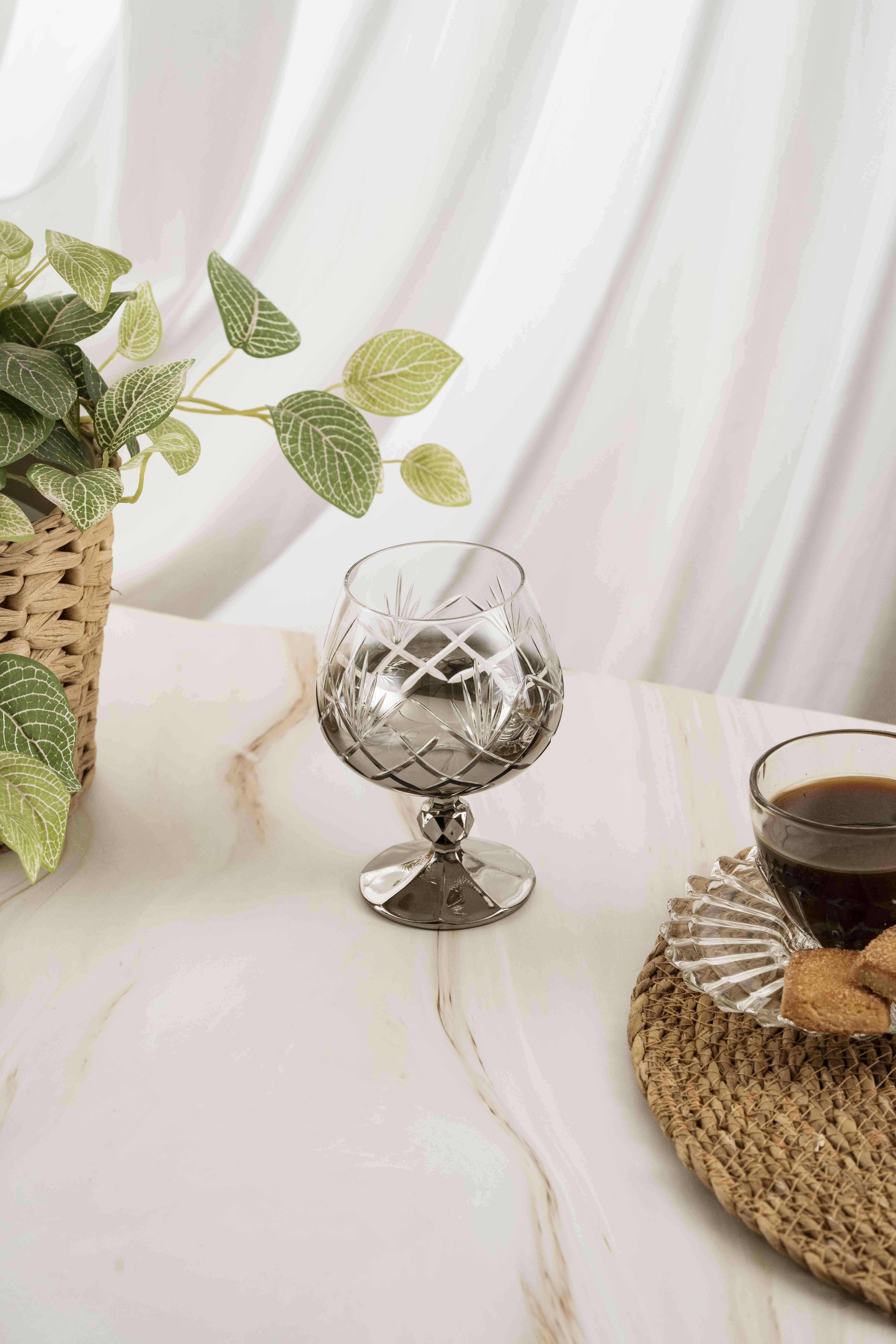 The Crystal Home Coffee Glass offers a design that adds elegance and style to your coffee enjoyment. It's an ideal choice for those seeking a sophisticated touch, both for everyday use and for special occasions. This stylish glass combines quality and aesthetics in every detail.
